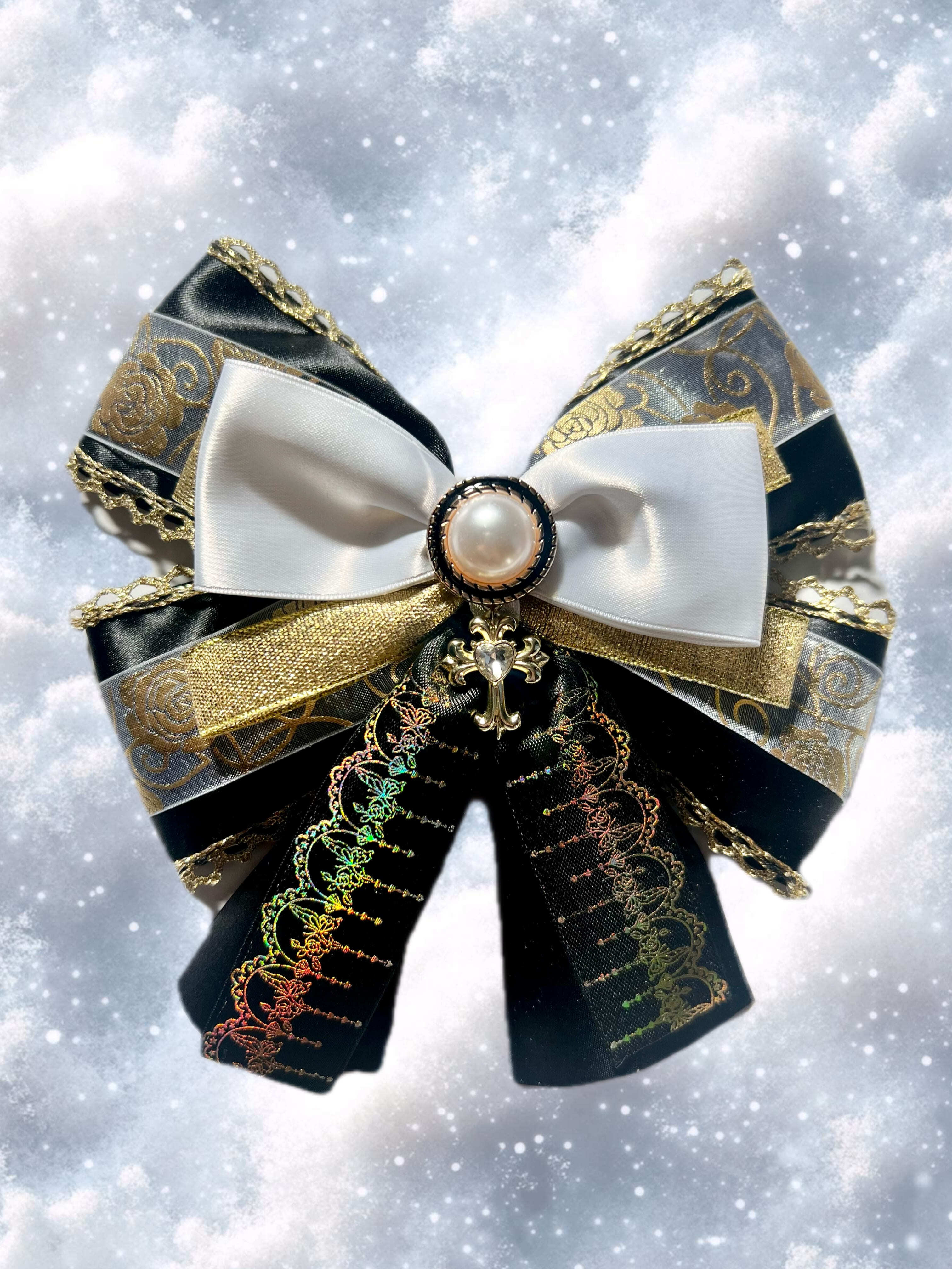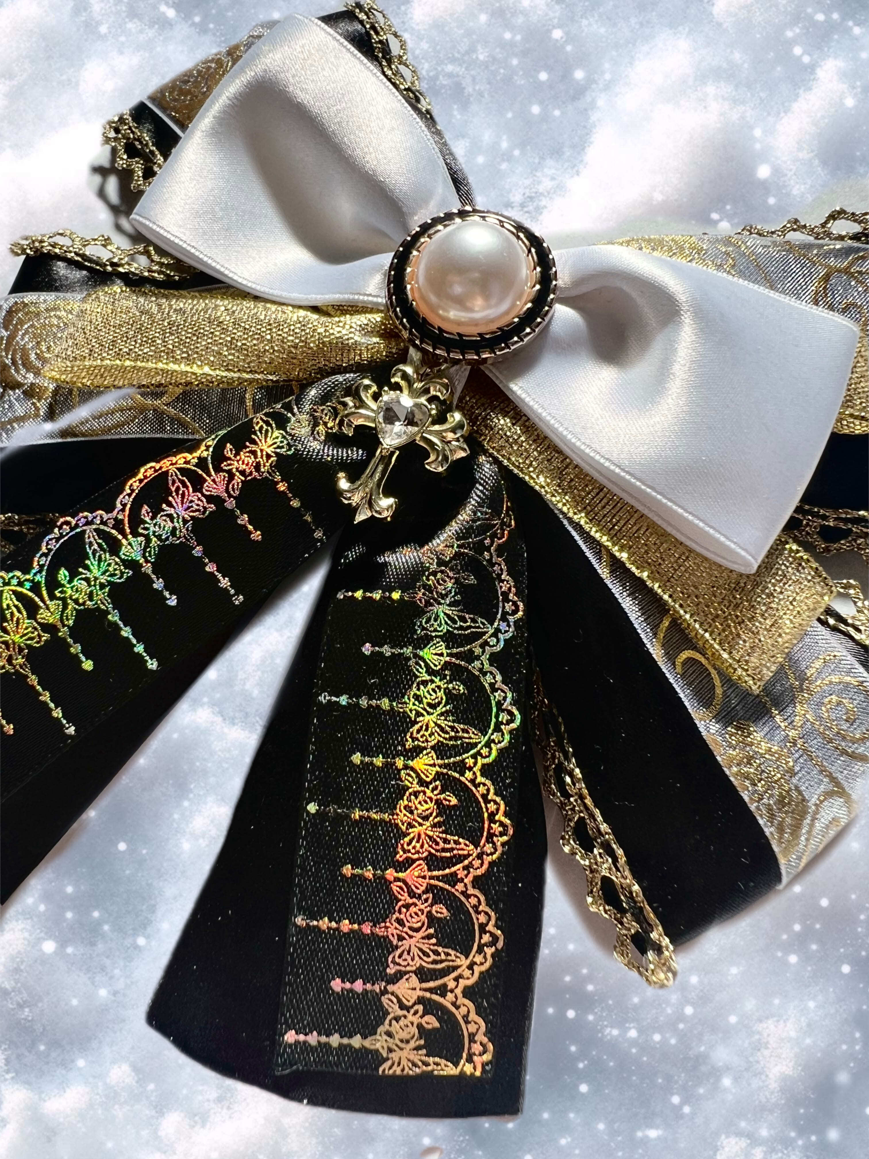 黒とゴールドを基調に、センターの純白さが特徴的な高級感溢れるリボンです♡