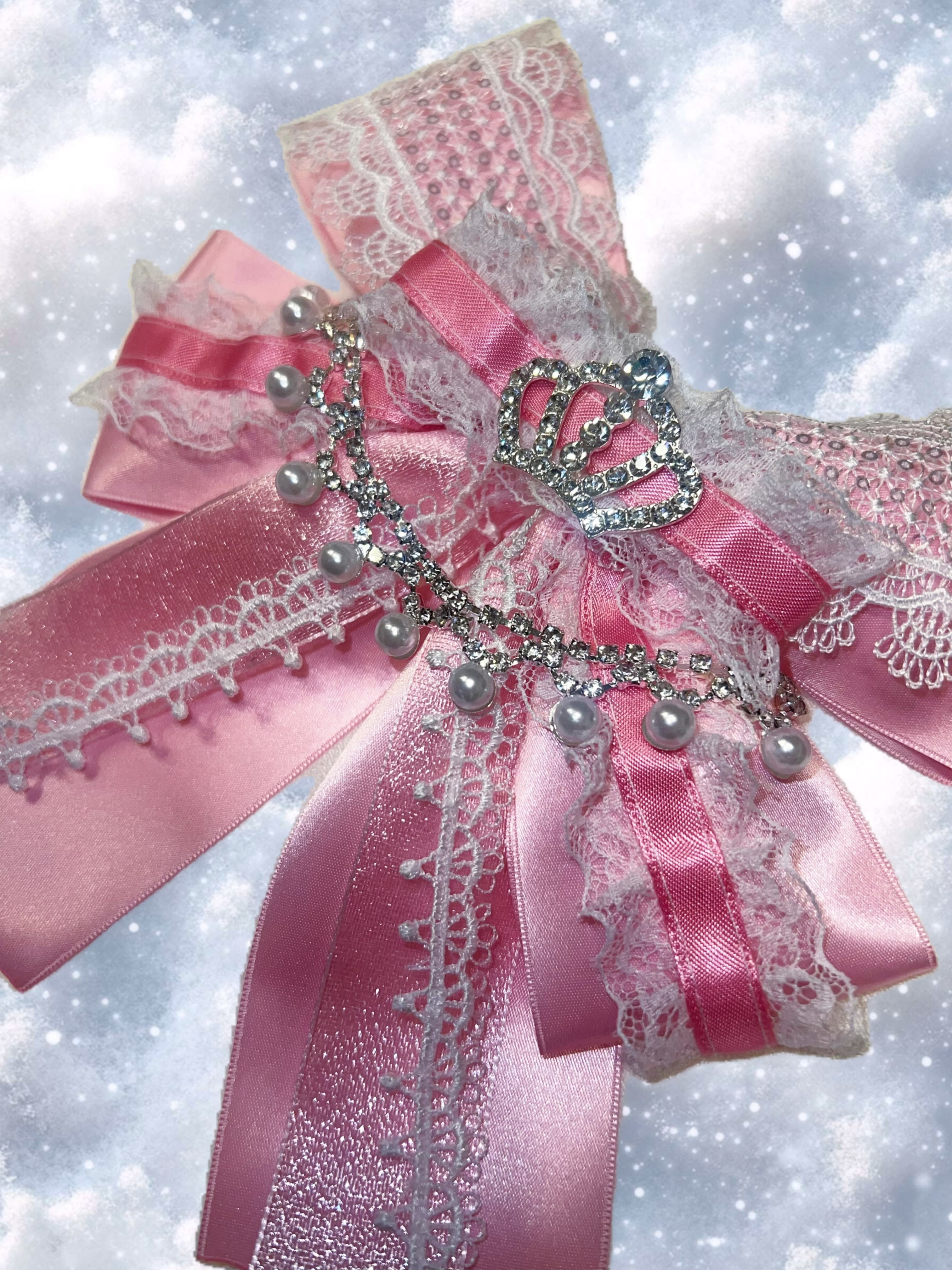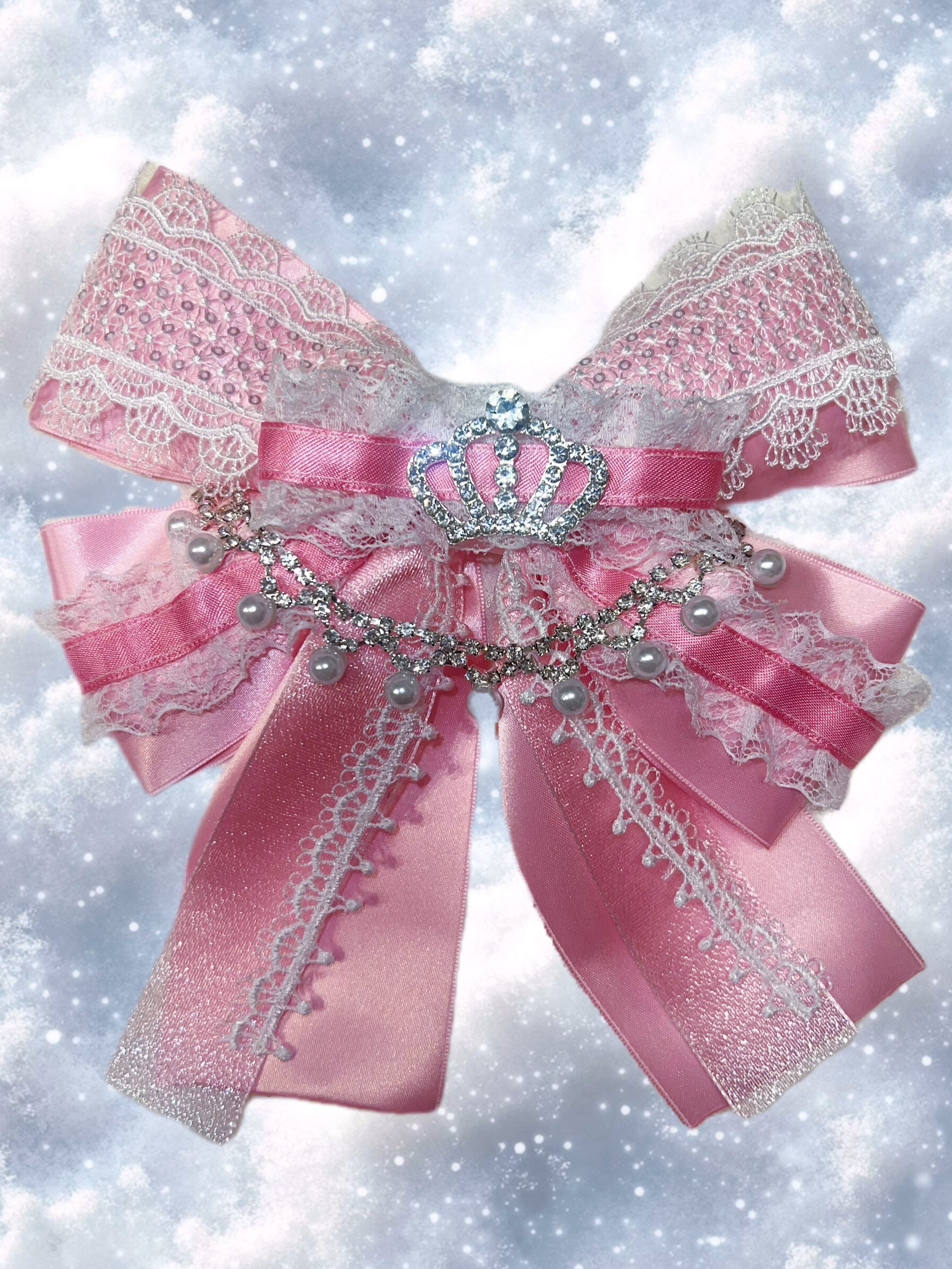 ラメが輝くリボンに、レース、ビジューチェーンを贅沢に使った特別なリボンです♡