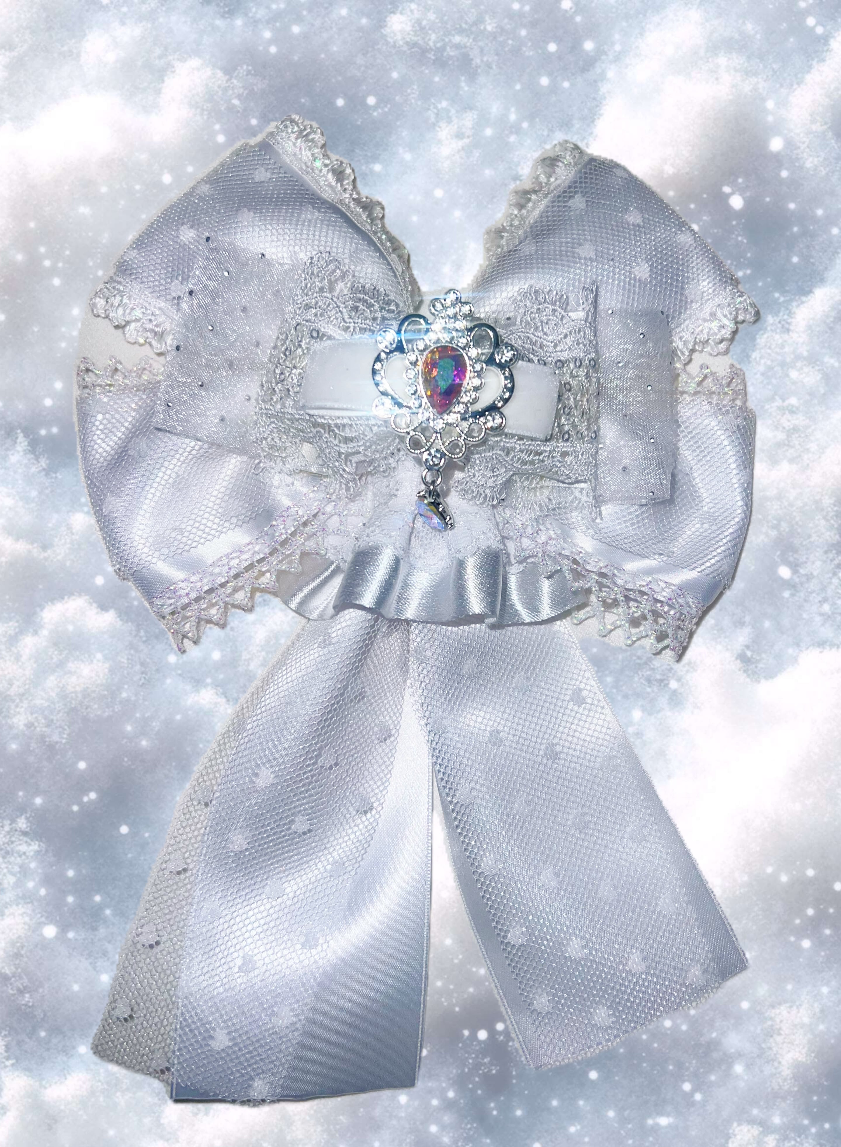 オールホワイトにこだわった純白のリボン。異なる素材とデザインのリボンを重ねた華やかなリボンです♡